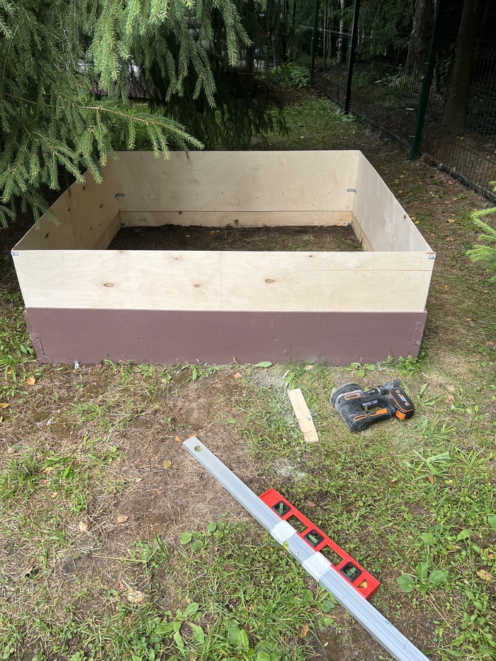 Дополнительно я добавила слой земли по бокам от забора, чтоб хоть немного исключить подкоп и укрепить постройку. ( вкопать загон нереально из-за корней гигантской ели)