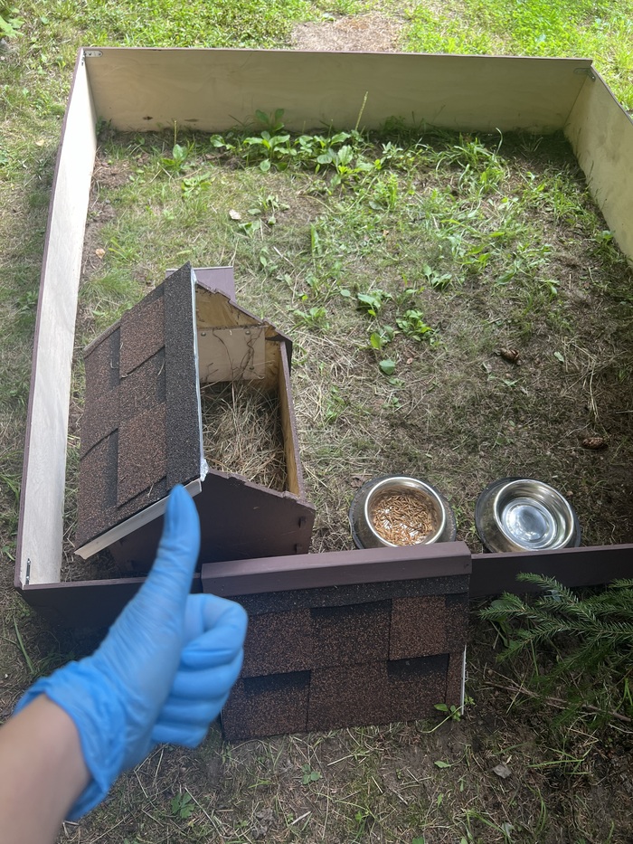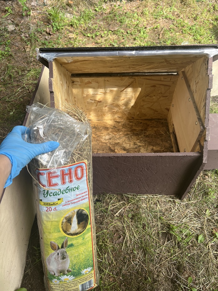 Ежики выбрали в качестве туалета один угол в домике, поэтому приходится регулярно наводить чистоту и заменять сено. Дополнительная мисочка с водой все еще остается внутри домика, ежата перестали хулиганить и переворачивать ее, теперь пьют аккуратно. В рамках генеральной уборки я также мою уличные, основные, миски для еды и воды и убираю территорию загона от элементов жизнедеятельности ежиков.