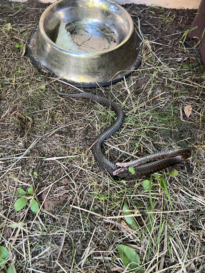 В природе еж-гроза змей, поэтому сегодня первая встреча со змеей у ежат. Рядом с участком был обнаружен уж ( это же уж, правда?) умерщвлен и доставлен в загон ежатам. Будут ли есть? Или я зря поборола свое отвращение?