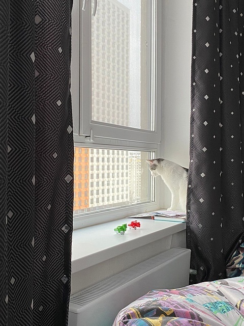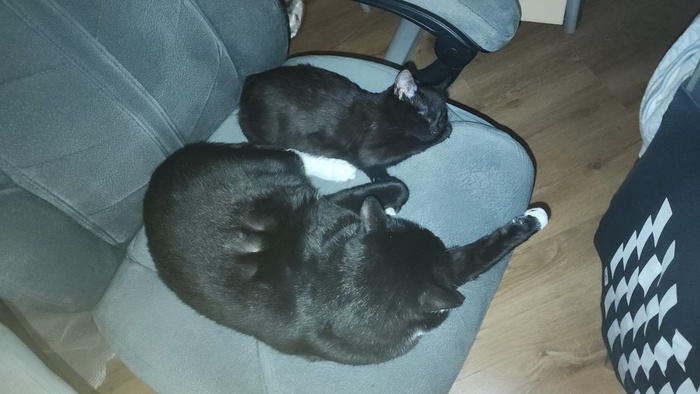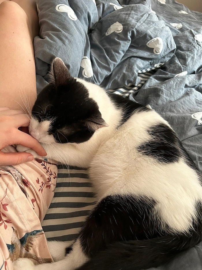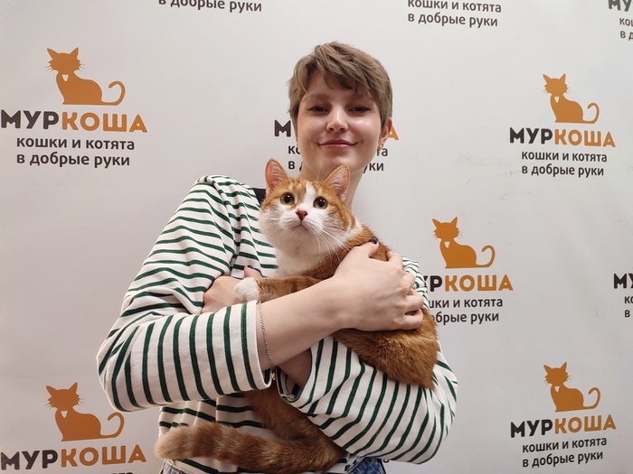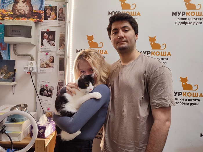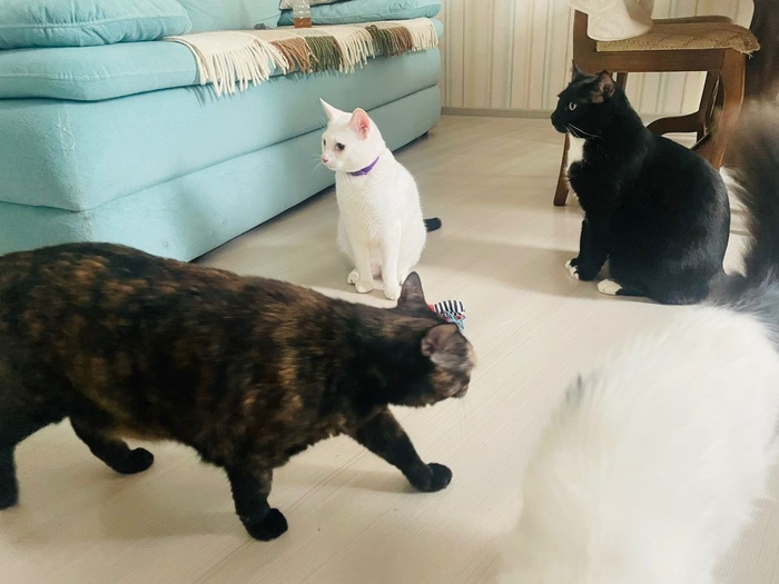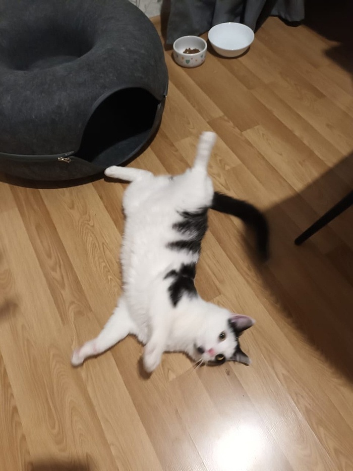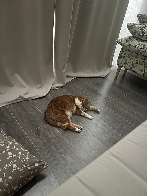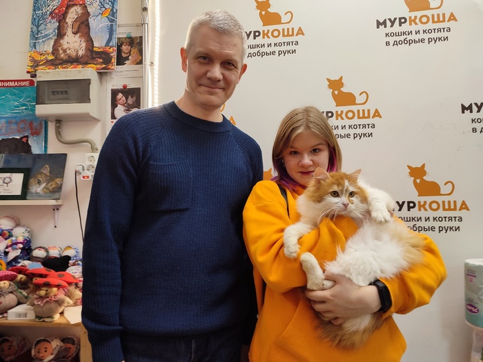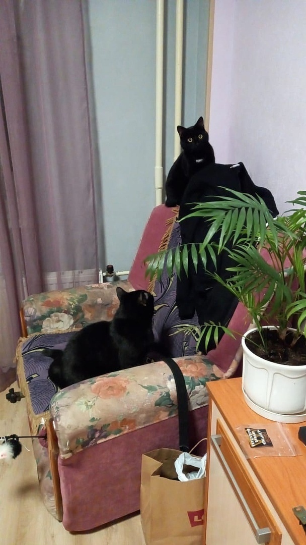 «Добрый день! Хотела вас порадовать: у нас всё более чем хорошо) со всеми познакомился, первый день трусил, дышал, как собака, сухой корм не ел, пописал поздно ночью. На руках сидел, мурчал и обнимался, всю ночь мне пел своё "люблю") вчера познакомились уже со всеми, общались больше с Василисой, она и спит с ним (и со мной). Наконец сегодня покакал, прописался), хорошо поел. Скачет! Как лошадка! Учится запрыгивать и спрыгивать) пытается играть с остальными, по-разному получается, но всем интересно))) всё идет как надо. Считаю, они у меня супер!»