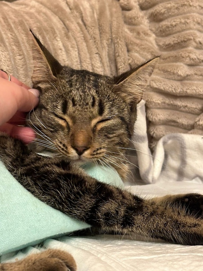 «Первый день привыкала, сидела в одеяле, к вечеру выползла на осмотр, поела хорошо. В туалет сразу в лоточек сходила, чему я была очень рада))».