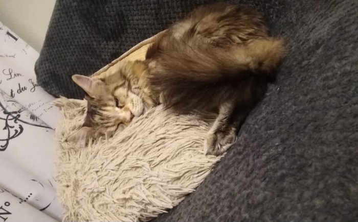 «Привет от Чулюпы, аппетит хороший, лоток найден, собаку не замечает, как будто всю жизнь с нами жила, пока проблема с принятием Жестины. Но, думаю, надо время».