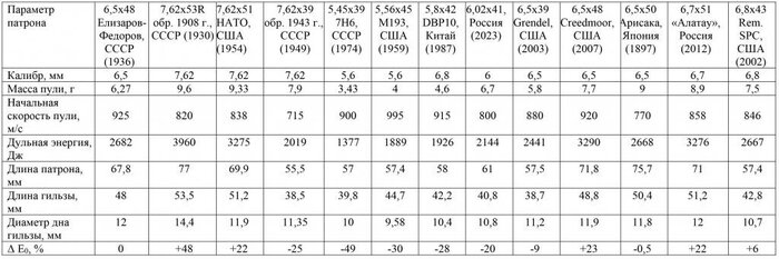 Некоторые параметры 6,5-мм экспериментальных винтовочных патронов улучшенной баллистики конструкции В. Г. Федорова