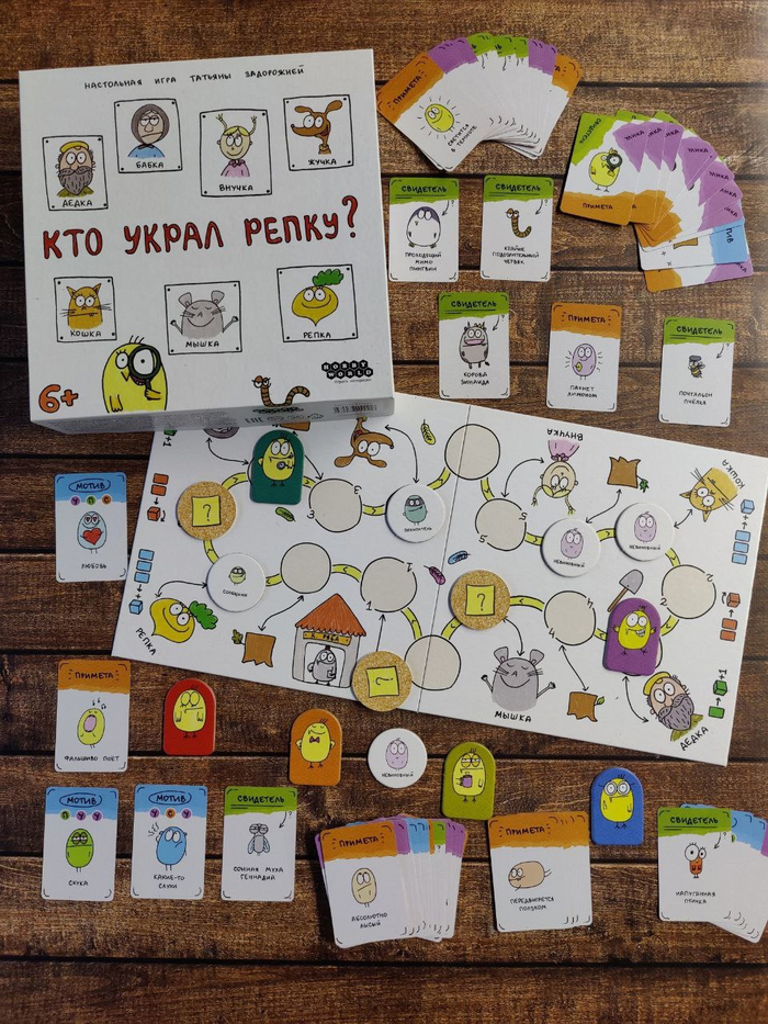Семейная игра-детектив для 2-6 цыплят-детективов от 6 лет, которая развивает креативное мышление и одновременно заставляет пошевелить мозгами в попытке узнать, кто совершил ужасающую кражу репы.