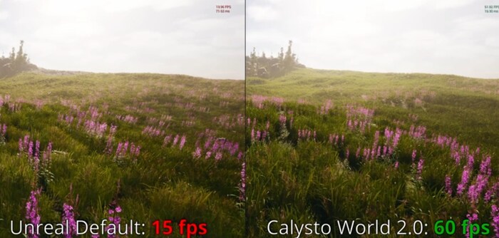 448-символьная процедурная демонстрация GLSL с горами, облаками и туманом.