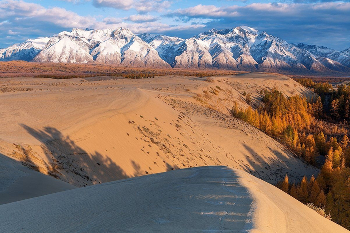 Например, Чарские пески. Это уникальный песчаный массив, который находится в Каларском районе Забайкальского края, примерно в 9 километрах от посёлка Новая Чара.