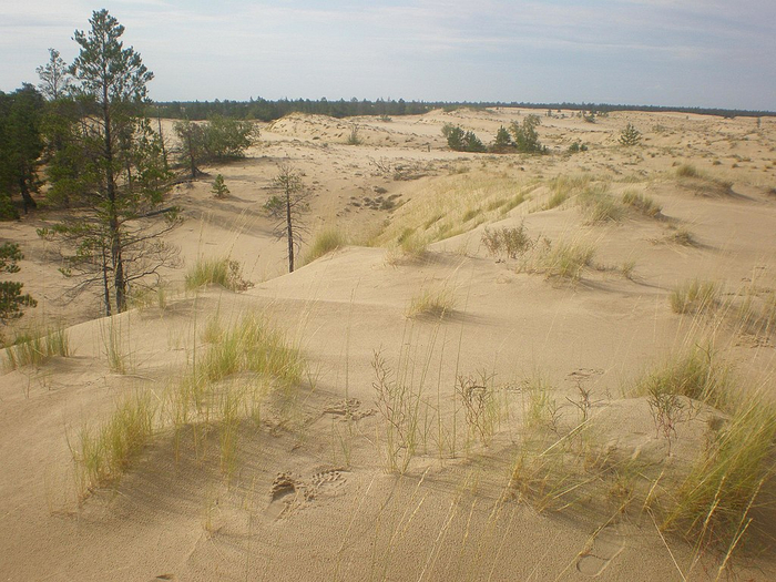 Эти дюны окружены тайгой, что создаёт интересный контраст между песками и лесами.