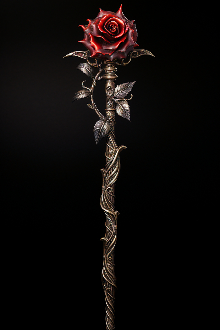 Ну тут даже не интересно, настолько похоже на внутриигровой вариант. Но, опять же, а как ещё сделать посох в виде долбаной розы?