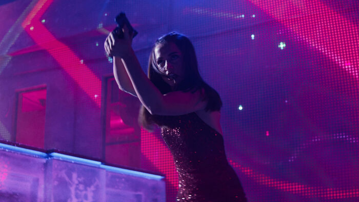 Для де Армас это первая заглавная роль в боевиках. Она с ней вполне себе справляется. Ева метает гранаты и топоры, ловко стреляет, активно перекатывается за укрытия и задорно вступает в рукопашную, получая даже больше тычков и пинков, чем Уик. Лучшая сцена – битва на огнеметах, которая сразу напомнила про Рика Далтона из «Однажды в Голливуде». Тут и классная работа каскадеров, и приличная графика… отыграно идеально.