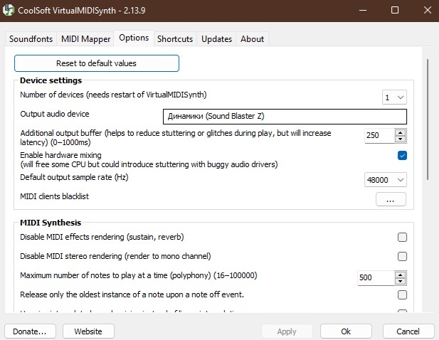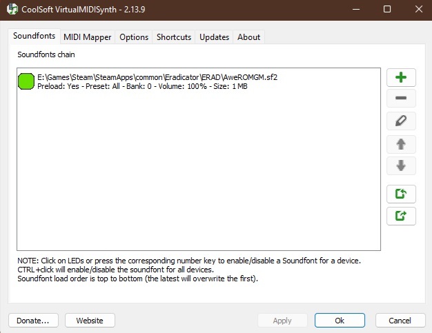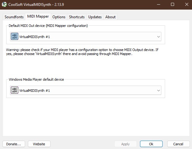 2. Нужно ПО, чтобы подтягивать этот самый банк в нужный момент, причём такое, что будет работать как в Windows 11, так и в DosBox-X, так и, например, GzDoom. Под эти критерии подходит VirtualMIDISynth. Последний билд, на момент написания этих строк, 2.13.9. На всякий случай также может потребоваться MIDIMapper, билд 2.1.2. Загружаем, устанавливаем.