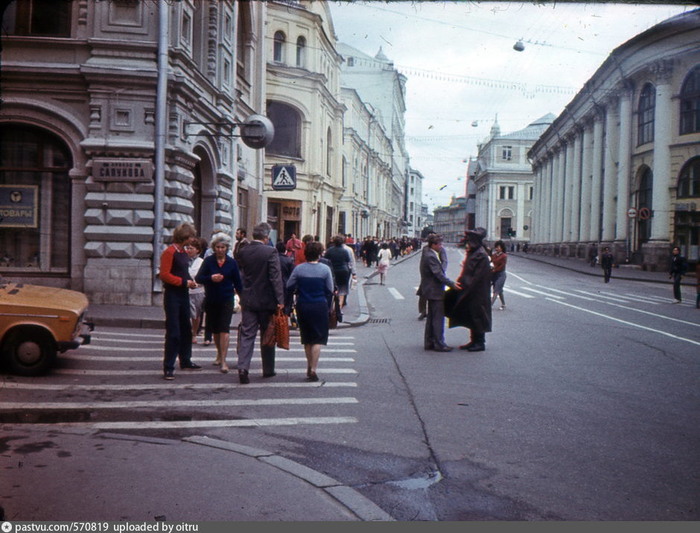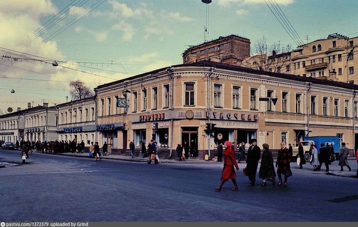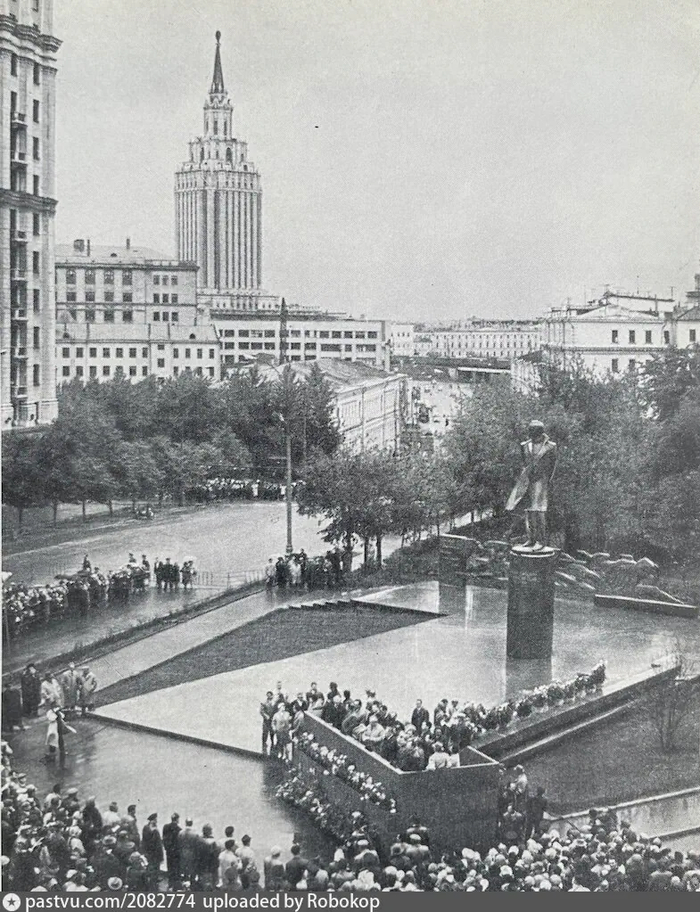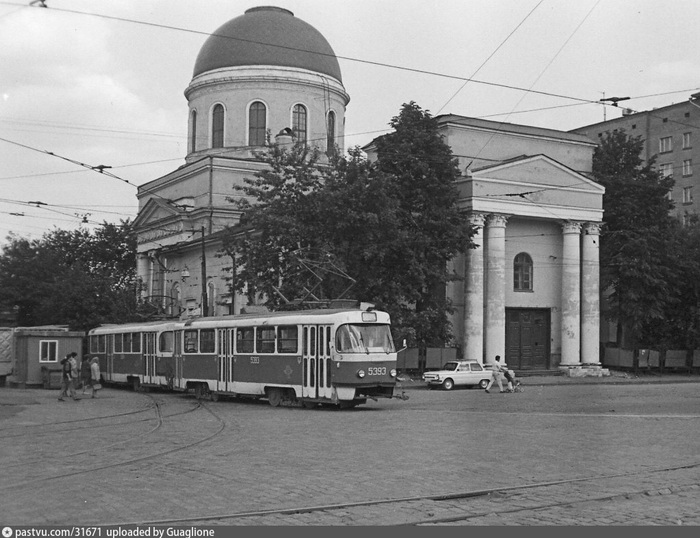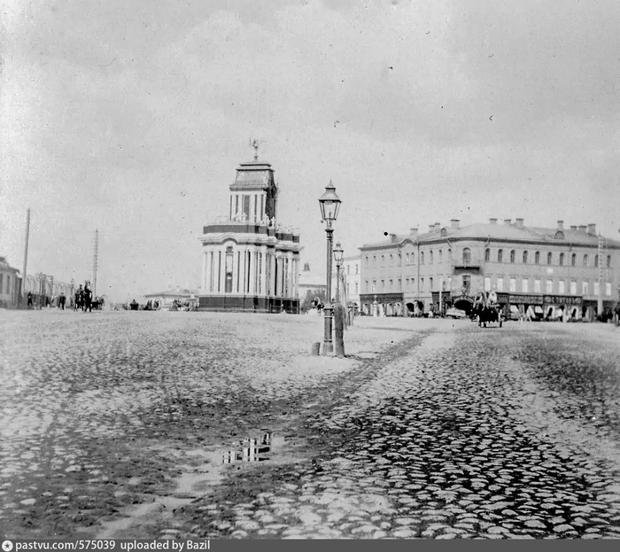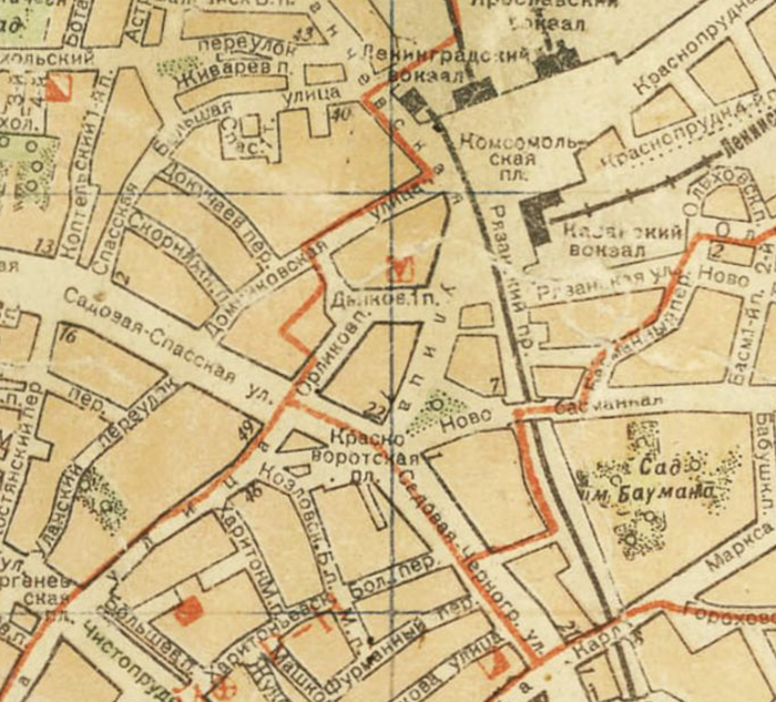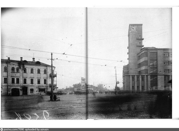 Замечательный контраст. Прошлое и будущее московского транспорта, 1935. Это наземный вестибюль станции "Комсомольская" между Ярославским и Ленинградским вокзалами. Сейчас тут стоит выход одноимённой станции Кольцевой линии. Автор фото: Б.Е. Вдовенко. С сайта www.pastvu.com.