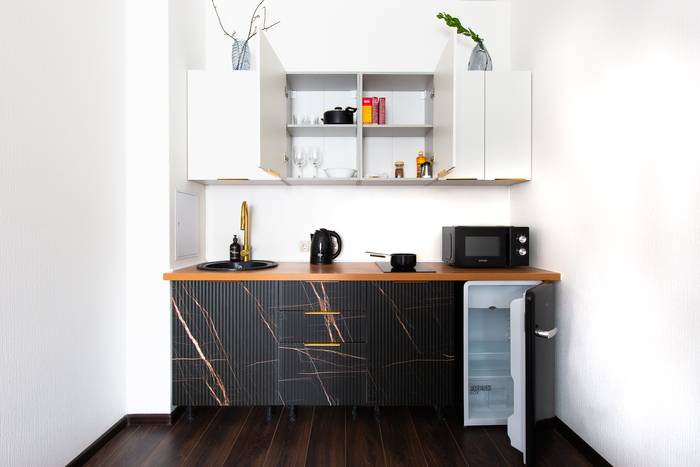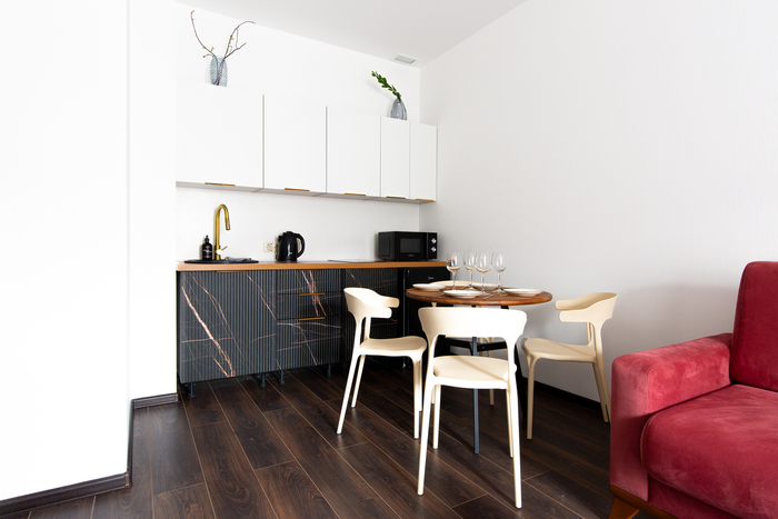 Скаталась обратно в гипер, сменила плинтуса на черный. Порезала по размеру и приклеила на жидкие гвозди. И, вуаля, балкон готов. Все про все 3000 рублей.