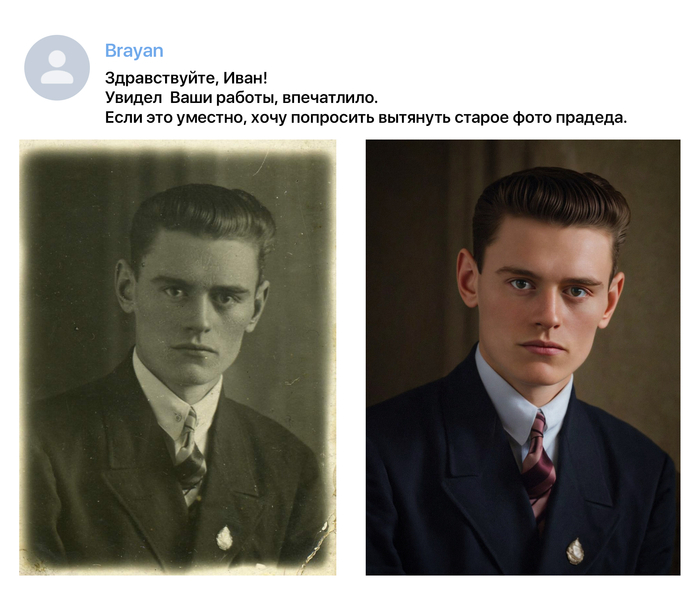 Я занимался обработкой фото ещё до появления нейросетей, и сейчас это такой же инструмент, как и Photoshop, которым я по-прежнему пользуюсь для восстановления фото, чтобы сохранить 100% сходство после нейросетевых улучшений.