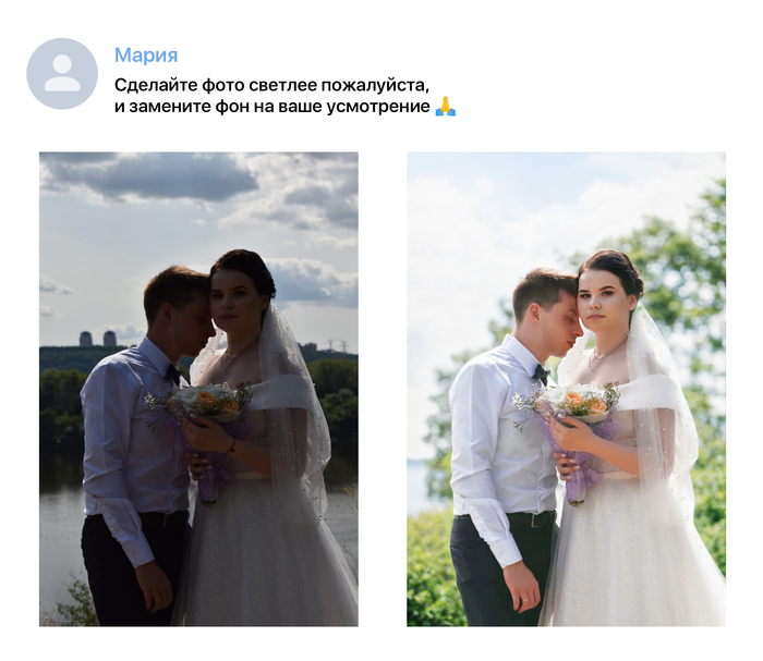 Чтобы получить бесплатную обработку фото - присылайте мне свои фотографии с вашими пожеланиями. Желательно