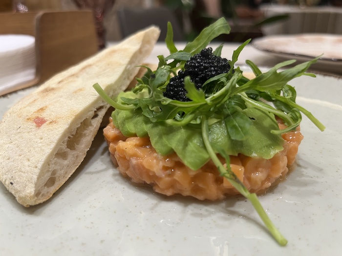 В качестве старта трапезы выбираем излюбленные закуски, по качеству исполнения которых можно судить о кухне. В моём персональном списке блюд-маркеров это тартар. В меню их два – мясной и рыбный. Саша поддерживает мою идею, берём оба.