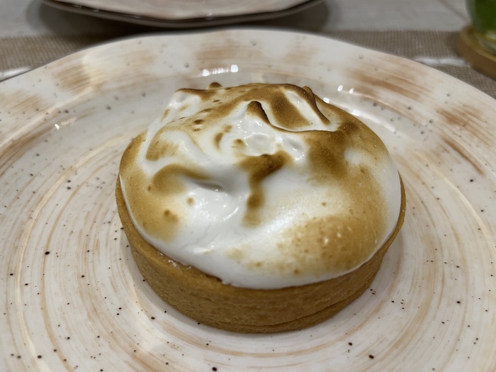 Взяли на двоих одну штучку. Не пожалели. Действительно вкусно. Под мягкой и нежной обожжённой шапкой скрывается приятная лимонная кислинка. Есть ощущение домашней выпечки – сделано с любовью и заботой.