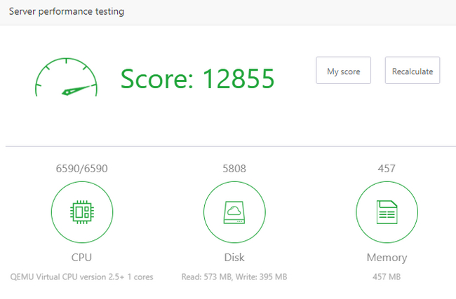 Вывод: Диск фактическим объёмом 29 ГБ (номинал 30 ГБ), SSD-производительность — 285 МБ/с при записи. Хороший показатель для виртуального сервера.