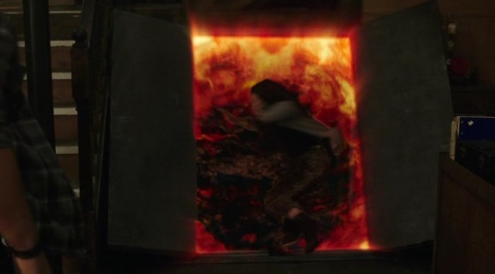 ...и это срабатывает. ФЕЕЧКА, не будь дурой, сквозь эту так сказать "клетку" из меда и ниток, пуляет пылью в Гарри, и Гарри сбегает с ней, еще и украв Книгу Таинств. Короче, надежный был у них план. Надежный, как швейцарские часы!