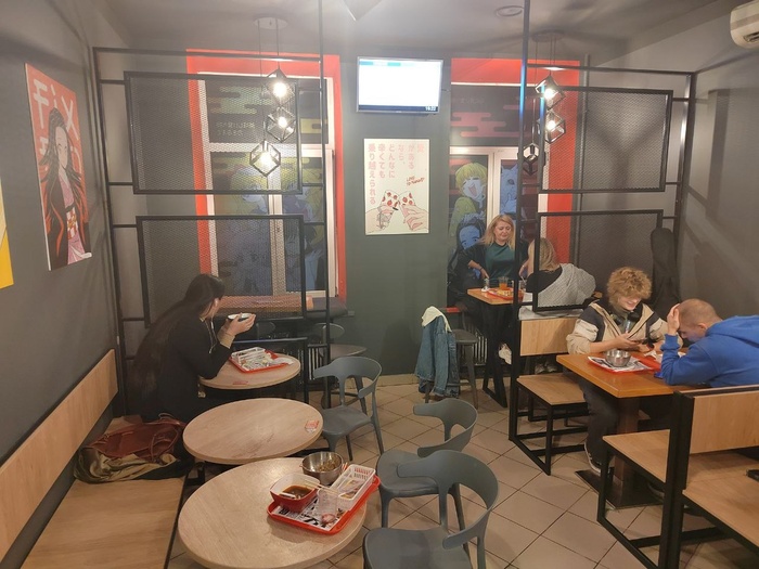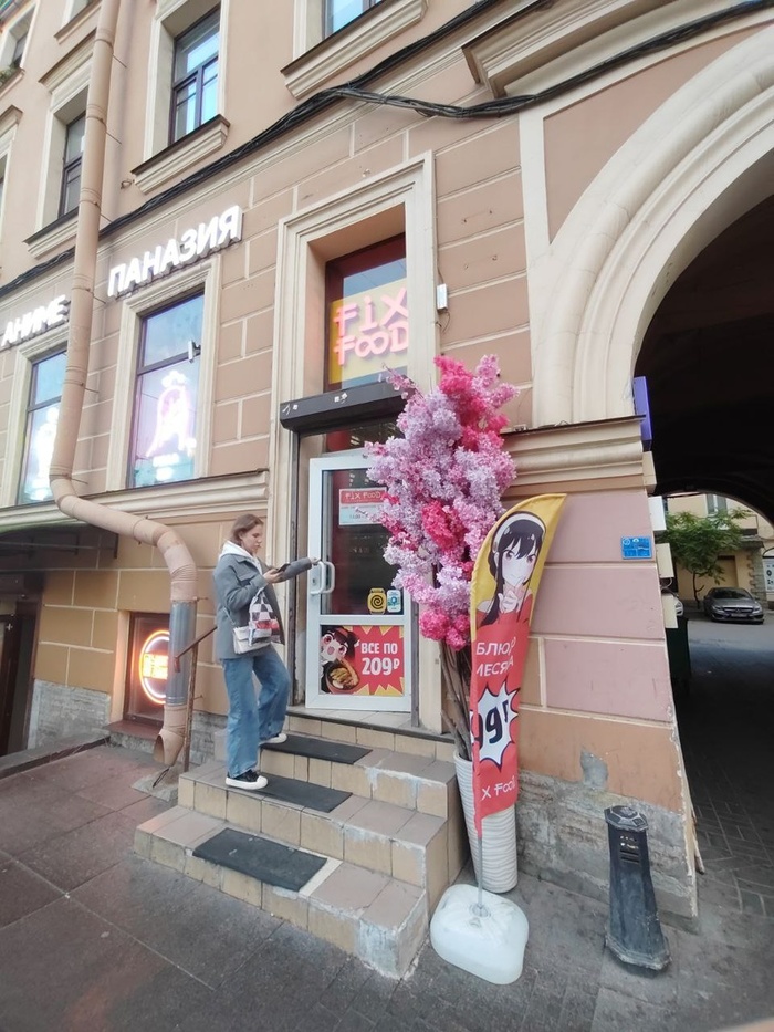 В этот раз, моё внимание привлекло заведение очень интересной наружности, и я просто не смог пройти мимо красивых неоновых портретов персонажей из аниме, такие как Наруто из одноименного произведения, Киллуа из Хантер х Хантер, а также несколько красивых девочек из популярных аниме. Этим заведением оказалось одно из кафе Санкт-Петербуржской сети паназиатской кухни - Fix Food! Кстати, пораженный качеством еды, совсем забыл сделать фотки самого заведения снаружи и внутри, поэтому ещё раз зашёл Fix Food, но на другом адресе, там сделал фотки и заодно попробовал ещё пару позиций. Оба заведения выполнены в идентичной стилистике, поэтому фотографии актуальны.