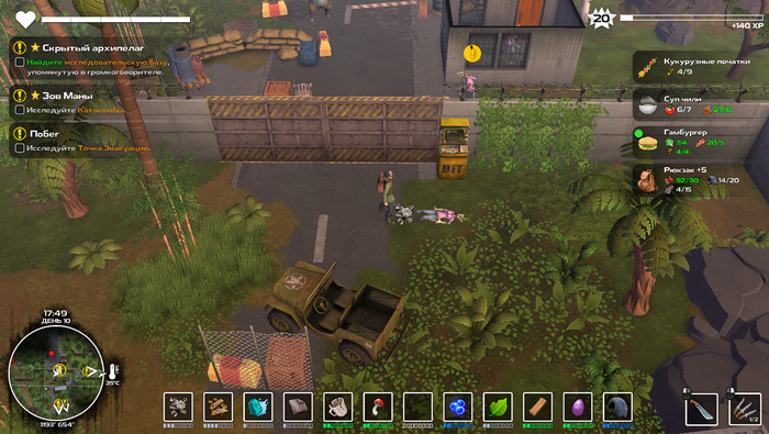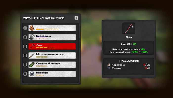 Материалы нужны нам, чтобы улучшать своё снаряжение. Не сказал бы, что стандартный для выживачей гринд-элемент сделан плохо. Он в меру потный. Предметы можно улучшать у костра или на верстаках. Лично я уделял внимание рюкзаку, ломику, а потом и мачете.