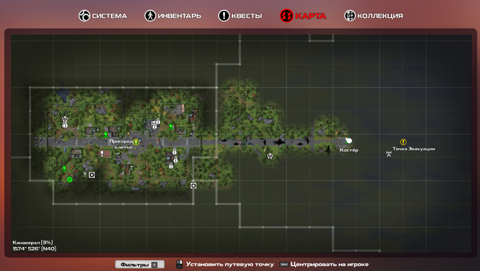 Карта действительно большая и насыщенная, видна рука геймдизайнера. Некоторые части огорожены бетонной стеной с колючей проволокой и разграничивают пространство. Часть проходов закрыта скалами. Если идти слишком далеко на юг или слишком далеко на север, то можно попасть под действие жары или же мороза. То есть туда лучше соваться с определёнными предметами и деталями одежды (ОБЯЗАТЕЛЬНО читайте, какие бонусы даёт тот иной предмет, брелок).