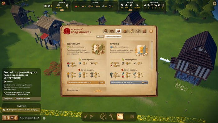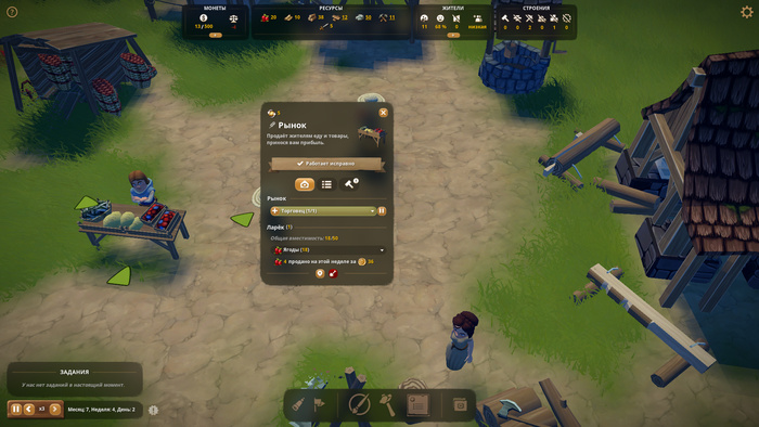 В конце каждого дня на экране появляется удобный отчёт о проданном. Деньги позволяют вам открывать новые здания или улучшать магазин.
