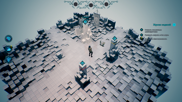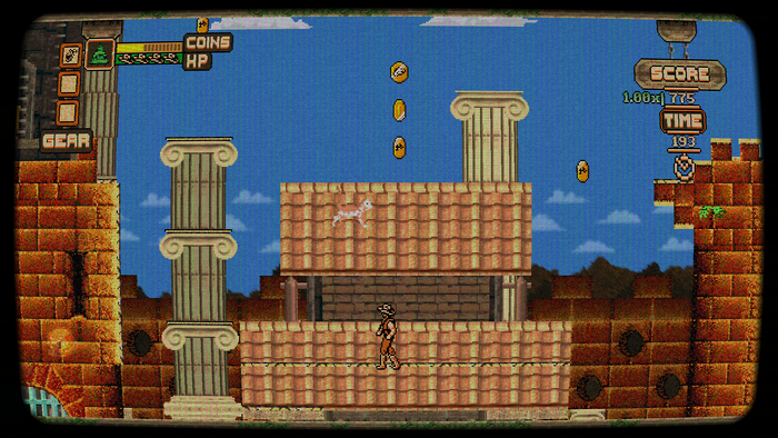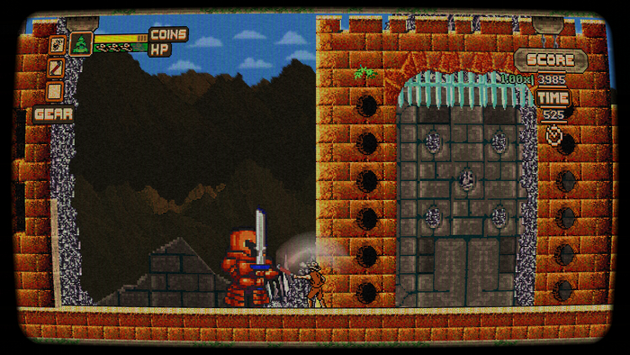 Что же с боевой системой? Она есть. Поначалу может показаться, что она кривая, как твоя спина. Кажется, что герой не туда бьёт. Но нужно привыкнуть к выбору направления, изучить радиус взмаха меча, промежуток между своими атаками. И вообще иногда удобнее и выгоднее — стоять на месте и ждать, пока враги подойдут сами, если только по тебе что-то не стреляет. Главное, не стоять на блоках, которые срываются вниз. Как ни странно, падение в пропасть не обнуляет очки жизни, а снимает часть из них.
