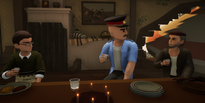А потом наступают 90-е. Вы — одинокий старик, которого не навещает внук, с женой давно развелись. Единственные ваши собеседники (они же собутыльники) — местный учитель, участковый и прощелыга. Старая страна развалилась, новая ещё нестабильна, и у каждого из ваших собутыльников свой взгляд на то, какой строй нужен России.