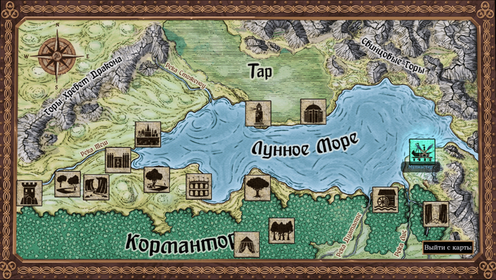 Изменения и правда заметны. К тому же в нем появилась полноценная карта мира с кликабельными значками локаций – вещь, которой часто не хватает в Neverwinter Nights. Как я понял впоследствии, такая карта в этом модуле просто необходима, поскольку перемещаться между городами Лунного Моря вам придётся много и часто.