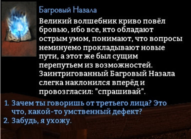 Примерно в это время модуль начал сыпаться сразу по двум параметрам. Во-первых, комментарии игрока, рассказчика и персонажей опаздывали, и случались через несколько минут после событий, которые их вызвали. То есть ты, например, уже минут 20 как в новом городе, полгорода уже исследовал, и тут тебе сообщают, какие эмоции ты испытал по прибытии.