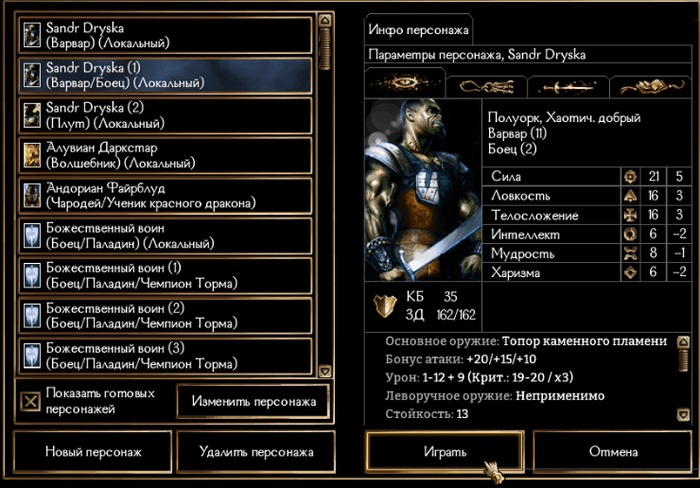 «Tyrants of the Moonsea» предназначен для персонажей 13-15 уровня, а мой полуорк-варвар после прохождения предыдущего модуля был как раз 13 уровня. К тому же у него был полный инвентарь неопознанного магического лута, так что грех не импортировать этого персонажа в новое приключение.