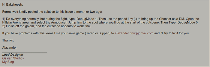 Для тех, кто несмотря на мою критику модулем заинтересовался: ссылка на оригинальную версию и инструкция от автора модуля по обходу бага с ареной. 6-8 часов игры вам обеспечены, но будьте готовы к тому, что история оборвётся на полуслове.