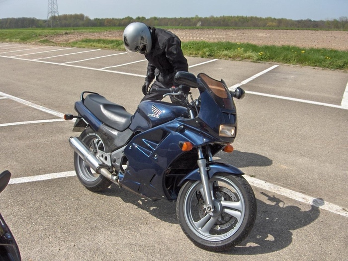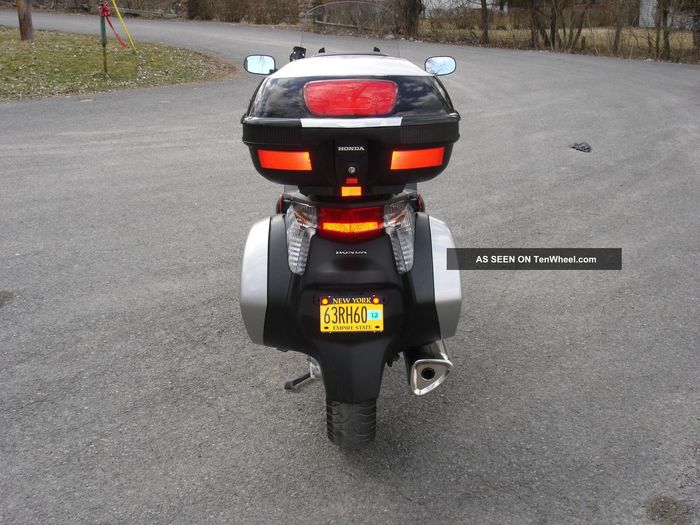 Существует Tour версия. Не могу сказать, является ли она ещё более «старшей» чем предыдущая или это одно и то же, но Tour определяется наличием хондовского кофра сзади (на картинке выше не он) и небольшой накладки на радиаторе, которая изображает плуг, впрочем не слишком успешно. Но по крайней мере она частично защищает ботинки от ветра и воды. Я также встретил мотоцикл со встроенной системой транспондера (правда для японских дорог) но не могу сказать, является ли это привелегией Туров, японских версий или просто афтермаркет. Также на Тур-версиях на вторичке часто встречаются накладки под колени. Они продаются отдельно, не я не в курсе входят они в стандартную комплектацию Туров или нет. К афтермаркету на фото выше скорее всего относятся и дефлекторы на поворотники.