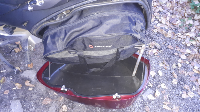 Так, например, я заказал фирме сумки для кофров и благодаря моим обмеркам они могут делать их для Девилей (нет, они мне не платили за рекламу :D ).Сумка снимает нагрузку с крышки и просто лежит внутри - адекватное решение.