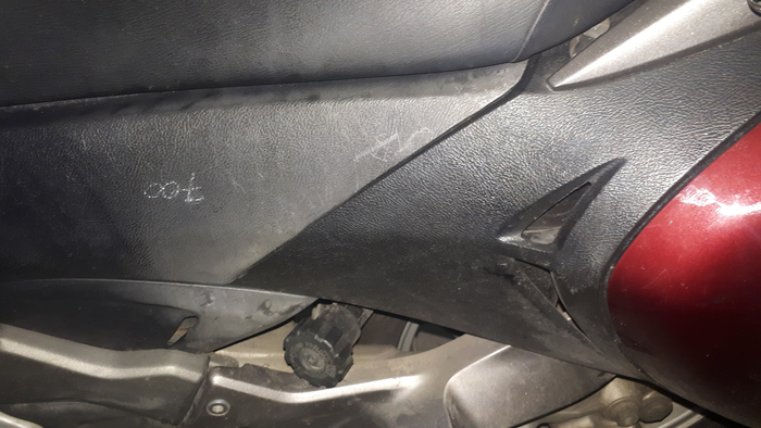 В общем и целом этот пластик не то чтобы доставляет проблем, но период "жизни" таких крашенных деталей - 10 лет, и примерно сейчас он и наступает для всех 700х Девилей. Да, вам может повезёт и попадётся мопед с уже поменяными деталями (как повезло покупателю моего девиля), а может - он начнёт облезать прям у вас в руках, как это было со мной. Но! Это не самая большая проблема с пластиком на этом мотоцикле.