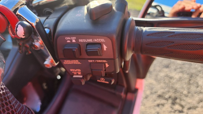 Давайте на минуту абстрагируемся от существования такой модели как Gold Wing. Что такое круизер как явление? Это низовой мотор, расслабленная посадка низко к земле. Но также это частенько не самые лучшие тормоза, посредственная подвеска и ветрозащита в виде листа поликарбоната. Ну или батвинг, чтобы музыка была. И, конечно же, жаркий V-twin между ног. А теперь представим, что мы хотим сделать на базе круизера турист и мы плевать хотели на условности. Вместо вибрирующего V-twin берём оппозитную шестёрку. Она не вибрирует вообще, при этом это абсолютно бездонный мотор. Он вытянет с низов вас, мотоцикл, пассажира, груз, двуосный прицеп и субмарину со дна марианской впадины. Не существует ситуаций, когда ему плохо и он не справляется. И вы едете на этом низовом моторе на низах, как круизер. А потом вы выходите за 3,5 тыщи и там ещё полшкалы а мотора у вас оказывается два. Первый был до 3,5 и это был круизерный тяговитый мотор с длинными передачами, а после 3500 вы внезапно обнаруживаете что у вас рядник который даёт вам пинка под зад. Круизерщики привыкли что у них классно всё по моменту внизу и за это надо расплачиваться отсутствием верхов – не в этот раз, такая вот фишка. Конечно, это не спорт-люкс-тур, как гантеля. Но одновременно с этим мне довелось сравнить этот бэггер и BMW K1600B, бэху я откровенно не понял. Она выглядит очень похоже по концепции с очерченными кофрами и мордой обычной GTL, но при этом не ощущается как круизёр ни по посадке, ни по мотору. Ездил я и на Gold Wing, бэггер ощущается динамичней, легче в управлении, нет ощущения что спереди и сзади стены.