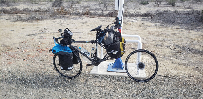 Выехал из Пайты в 11 часов дня. Проехал метров 500 и чувствую что то не то - в итоге заднее колесо спущено. Поменял камеру довольно таки быстро и снова отправился в дорогу.