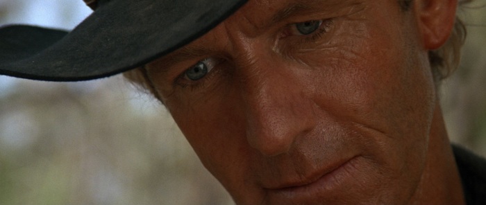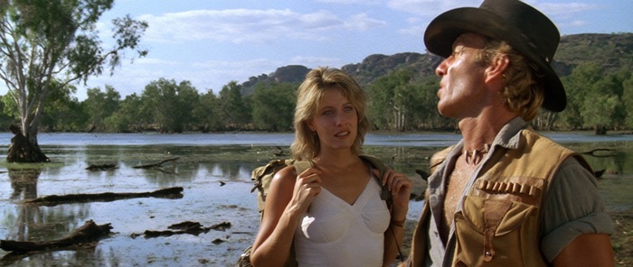 На главных ролях Пол Хоган у которого теперь можно рассмотреть поры на лице