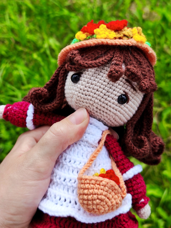 Потихоньку начинаю вязать осеннюю серию. Уже почти готова девочка, осталось совсем немного довести ее до ума: оформить прическу, связать аксессуары и девчушка готова дарить тепло и уют этой осенью 🍁🥮