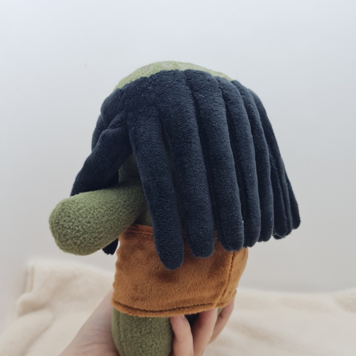 Повязку и дреды решила делать из плюша. Набивать руку на материале новом надо? Надо. И смотрится красивее, ярче. Флис люблю самой нежной любовью, но плюш будто блестит на его фоне. Иногда именно это и нужно в работе.