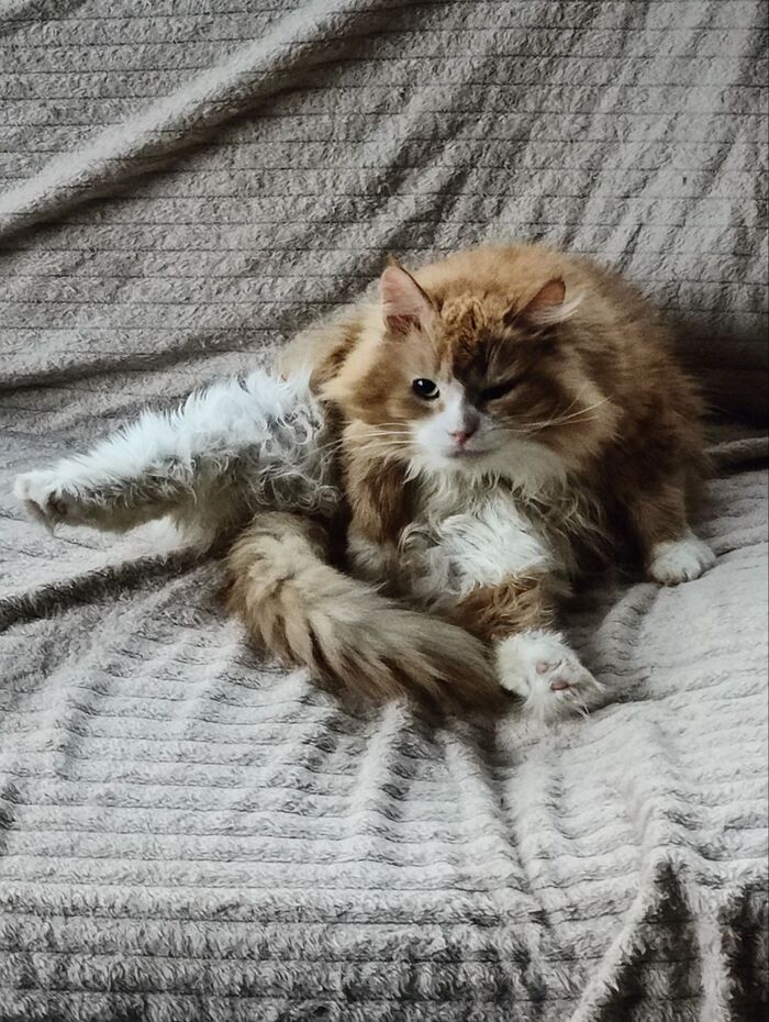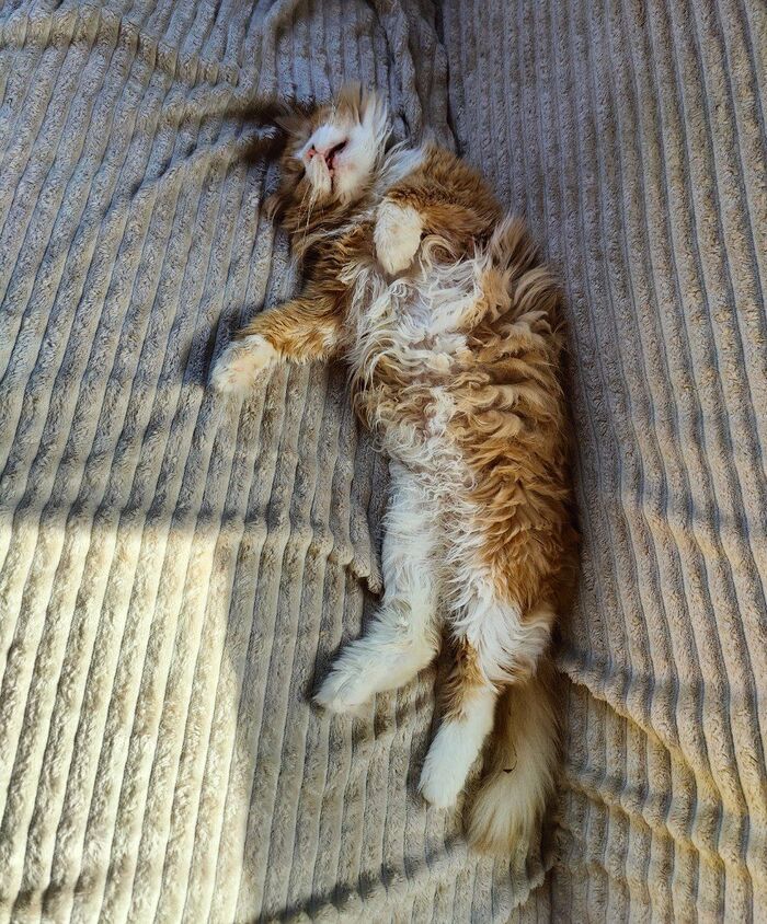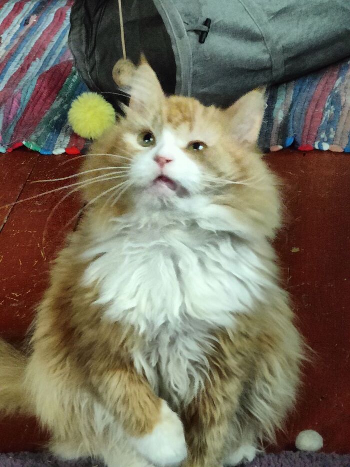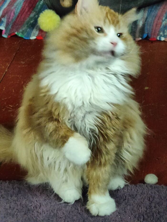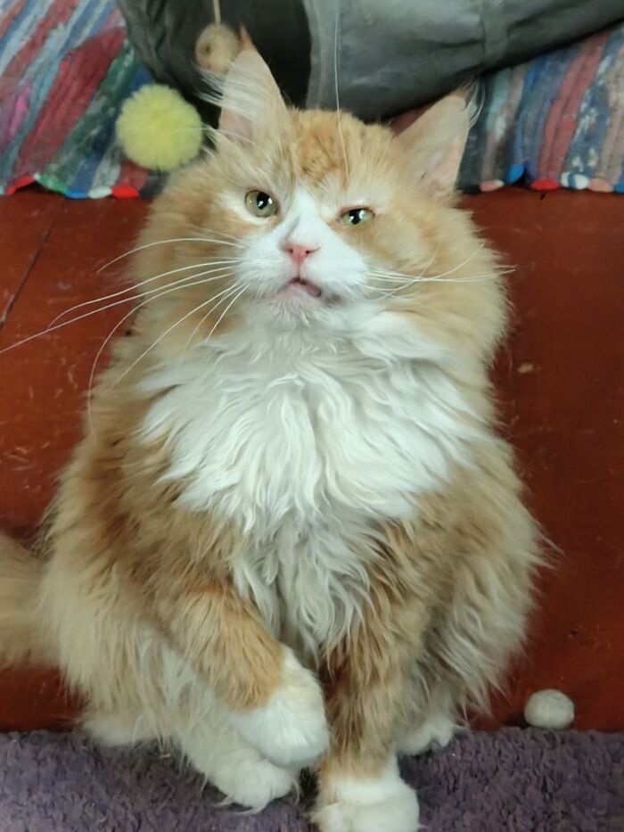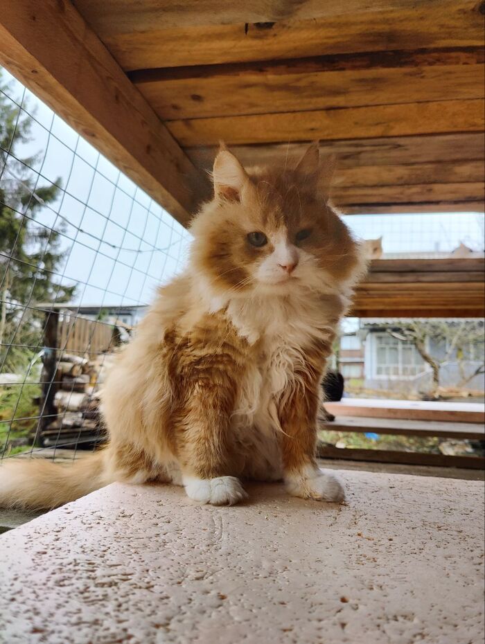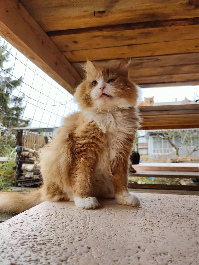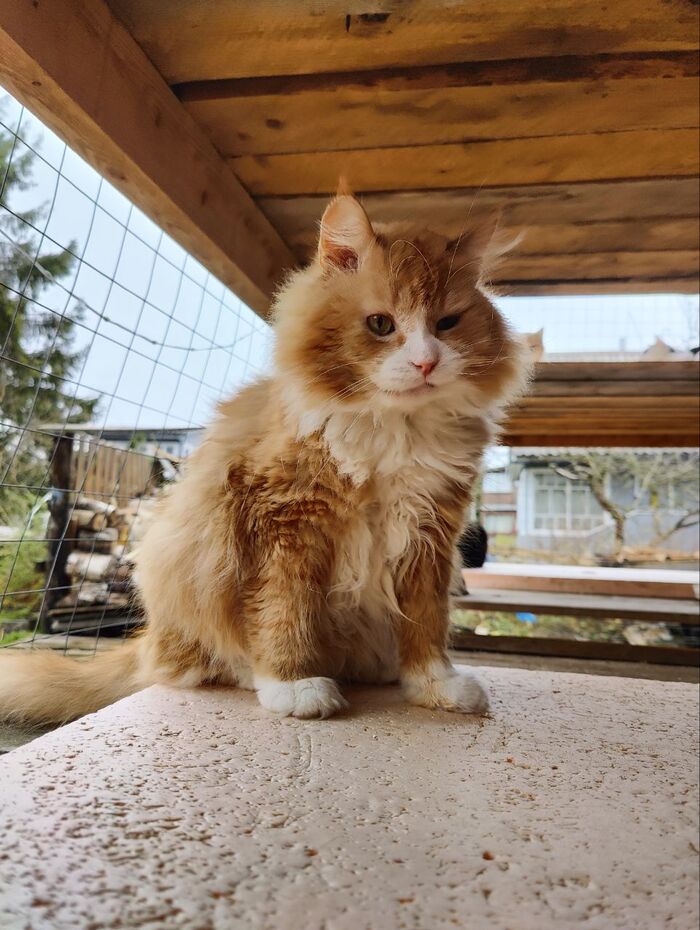 Всем привет от Рыжа. У него все хорошо. Считает, что он главнее и сильнее меня. Часто не выпускает из котовника, когда я там убираюсь. Но при этом со всеми котами дружит. Достается только мне.