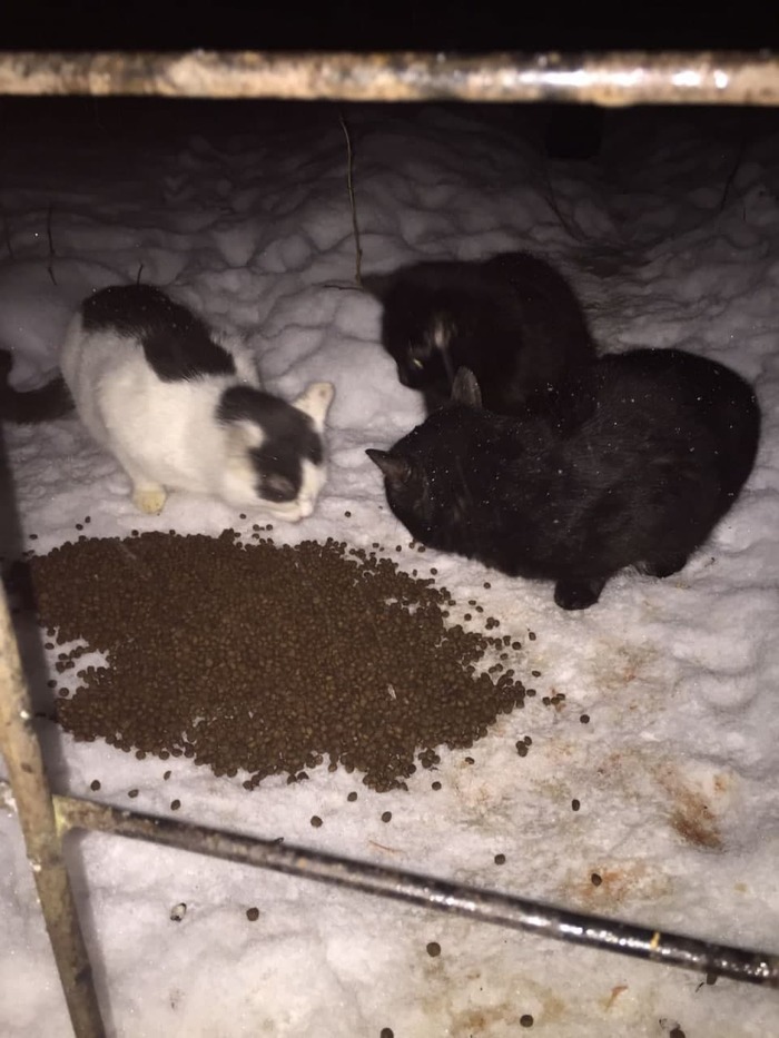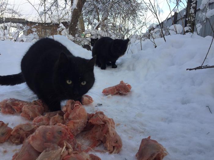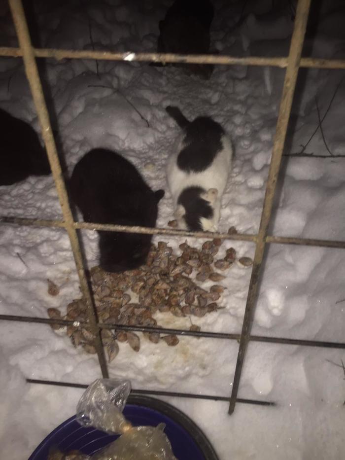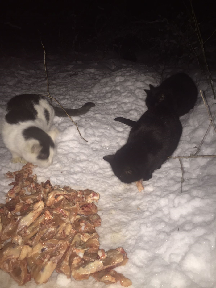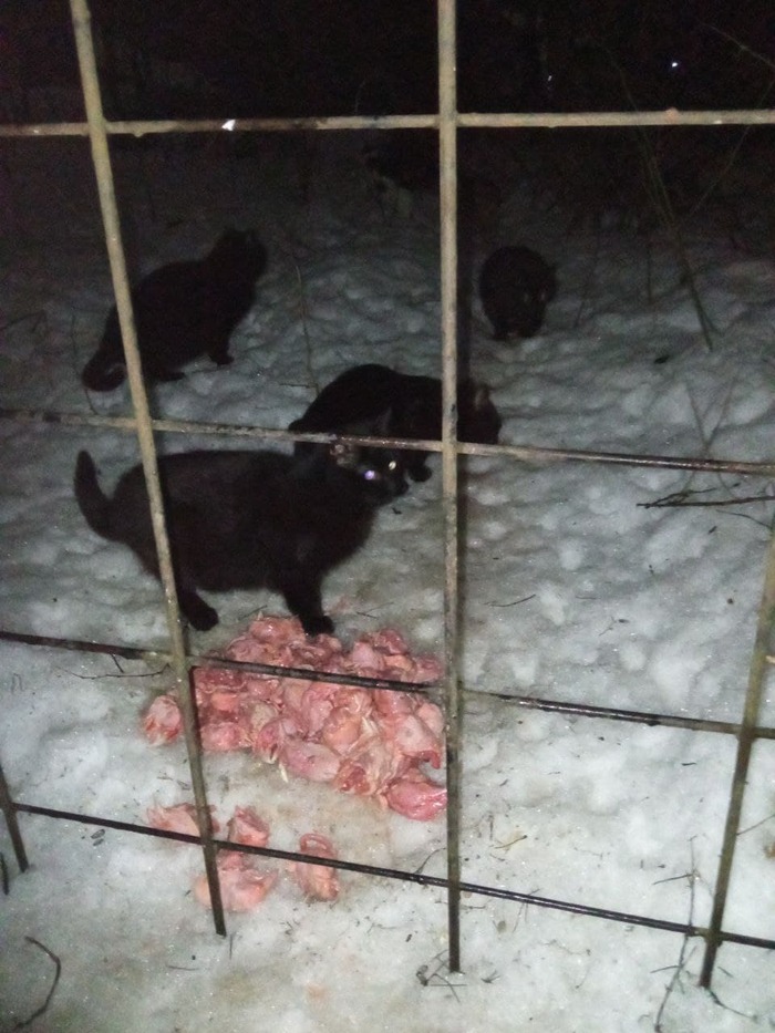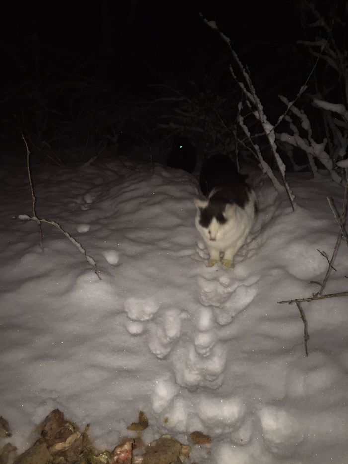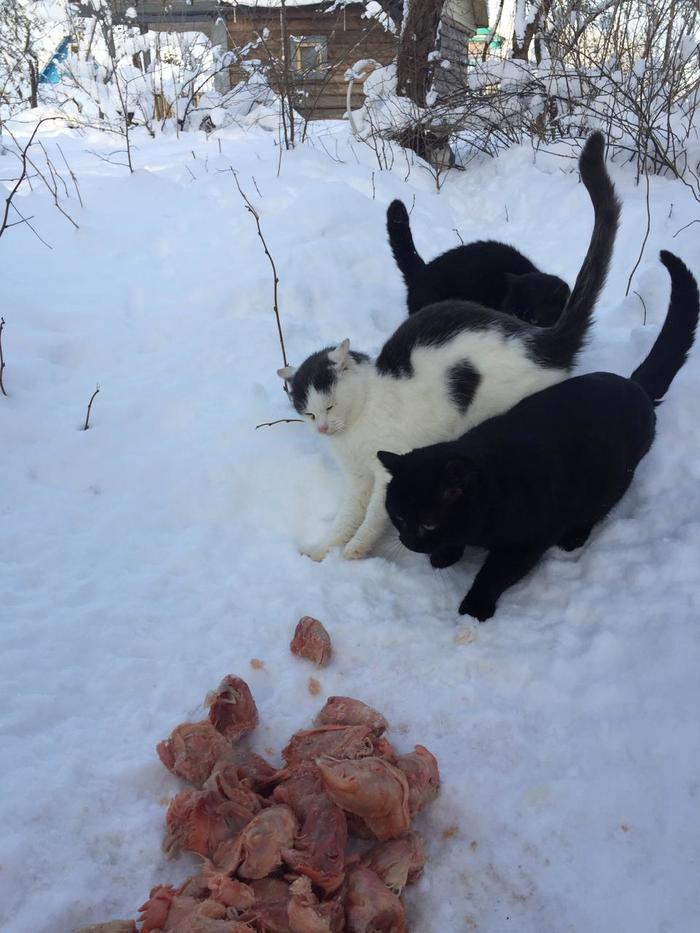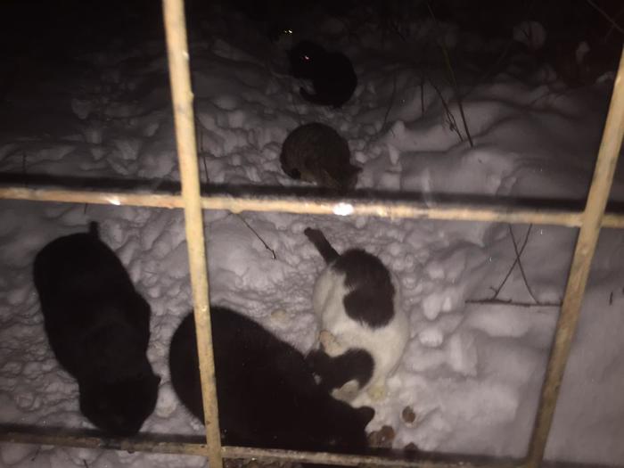 Кормлю брошенных дачниками кошек 4-18 февраля. Потеплело. СНТ топит. Мне прислали две посылки