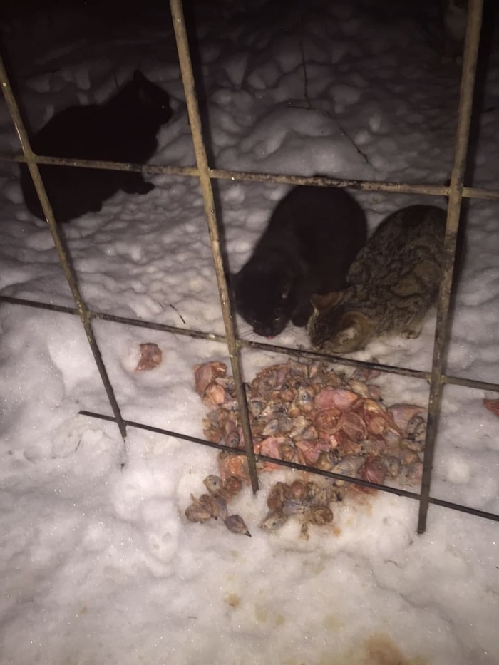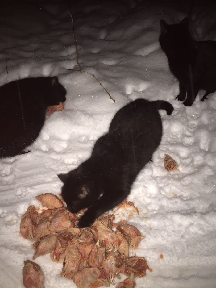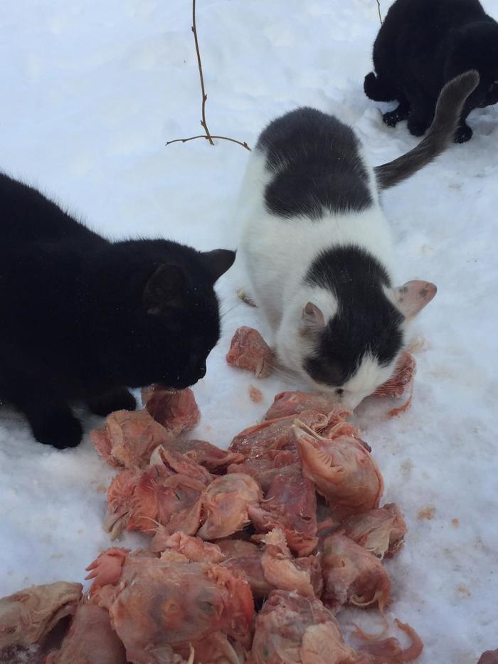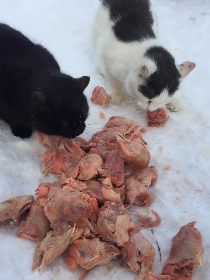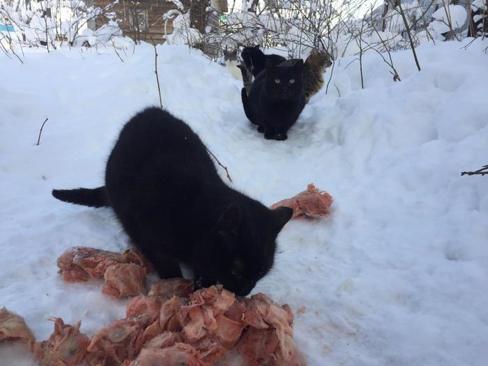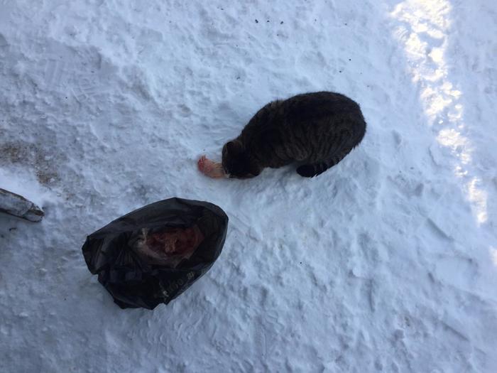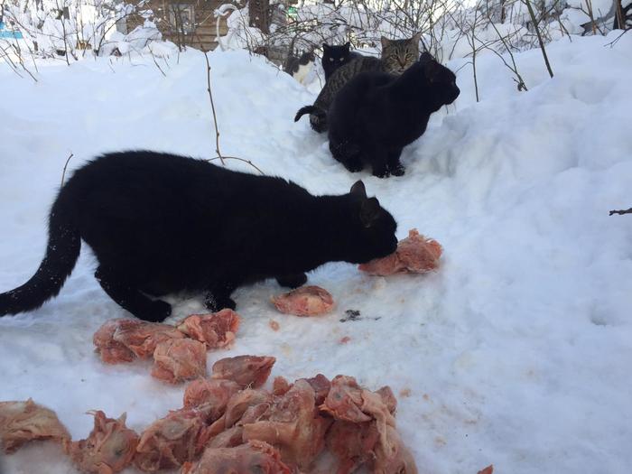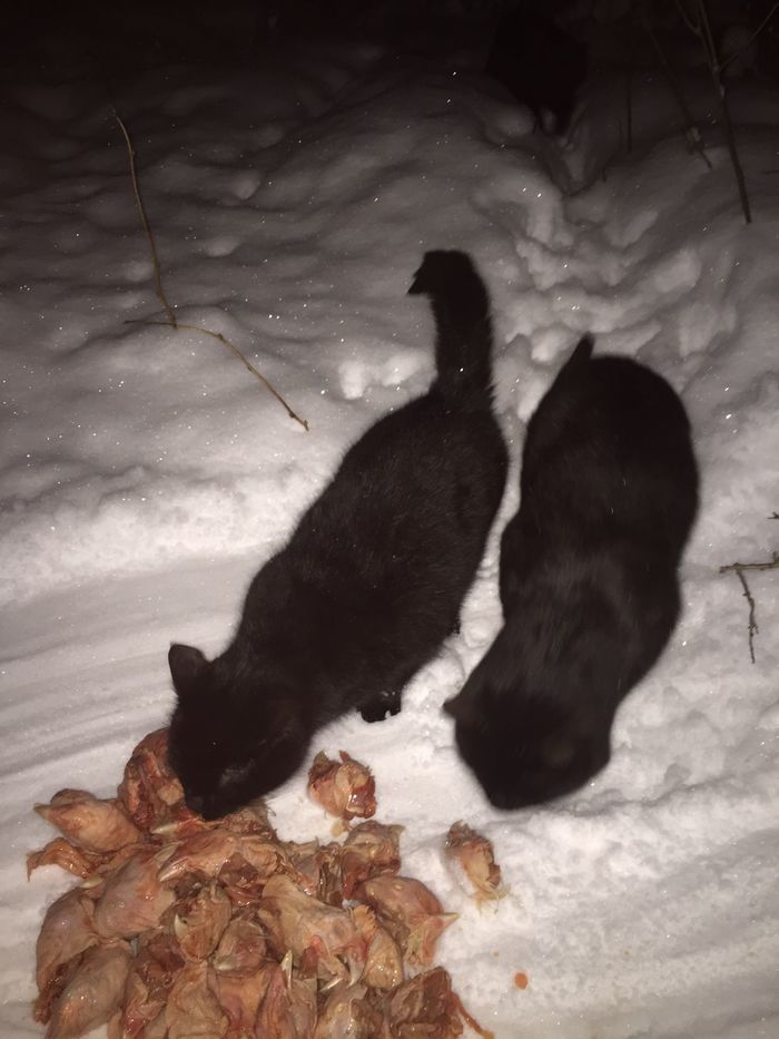 Кормлю брошенных дачниками кошек 4-18 февраля. Потеплело. СНТ топит. Мне прислали две посылки