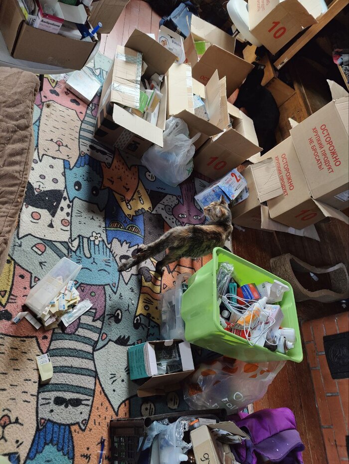 Всем привет. Я помогаю Ларисе из Любани, которая спасает животных. Недавно у нее два котенка заболели панлейкой. Про первого котенка я узнала очень поздно и его спасти не удалось. Для второго я собрала пакет лекарств, передала схему лечения и он выжил. Плюс, передала прививки для тех, кто был у Ларисы непривит.