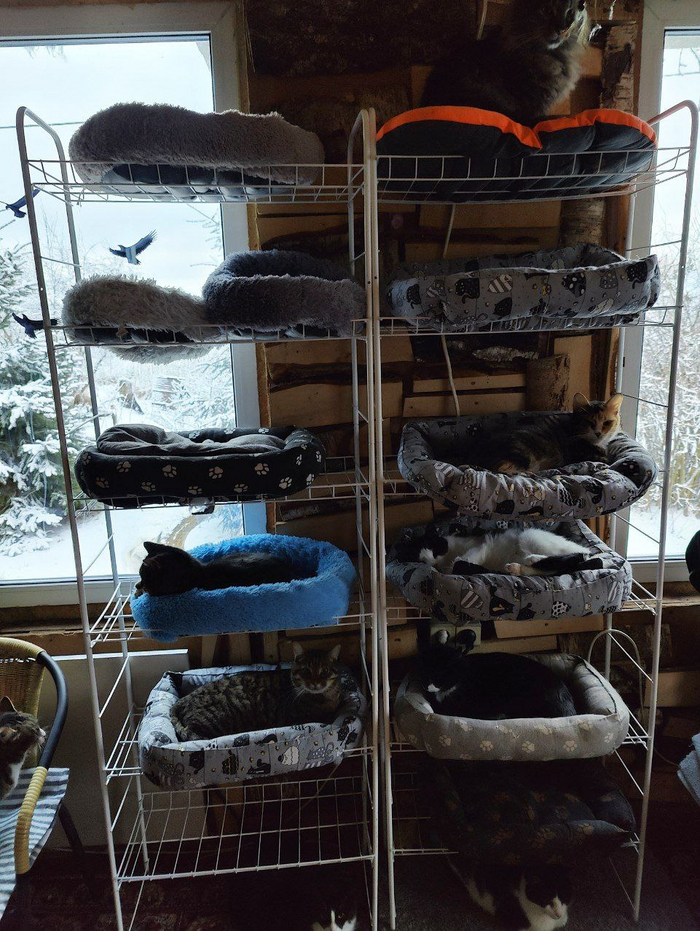 5. Среди всех них есть около 10 старых, диких, больных (почки, артрит и тд), которые живут у меня до конца жизни - им я не смогу найти дома, а отправлять их обратно на пустые ледяные дачи бесчеловечно.