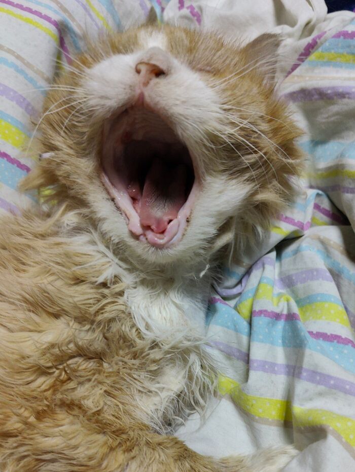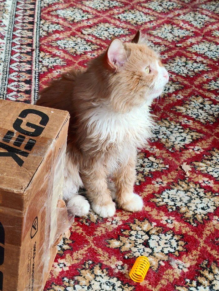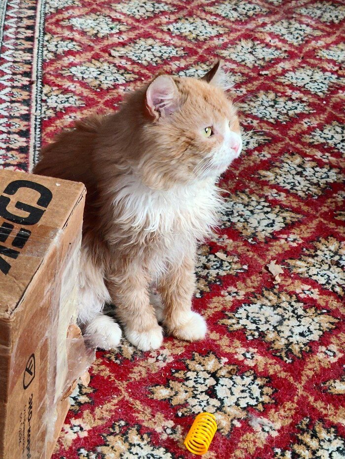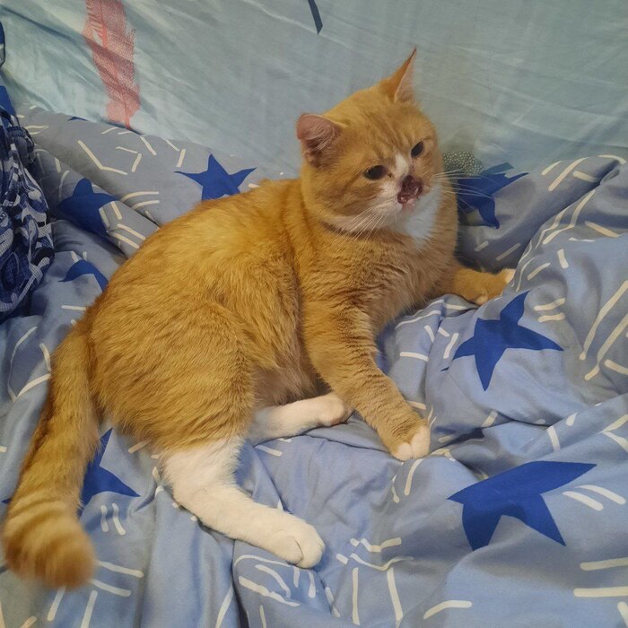 Всем привет от Рыжего АКА Обсосанный Валенок. У него все прекрасно. Мне кажется, что его вообще ночью подменили. Ну или он решил первый раз в жизни поиграть, поскакать, как следует покушать, посмотреть на птицей и все такое. Правая часть рта у него как под анестезией (когда делают зубы у стоматолога, делают укол и потом сложно контролировать рот в этом месте)