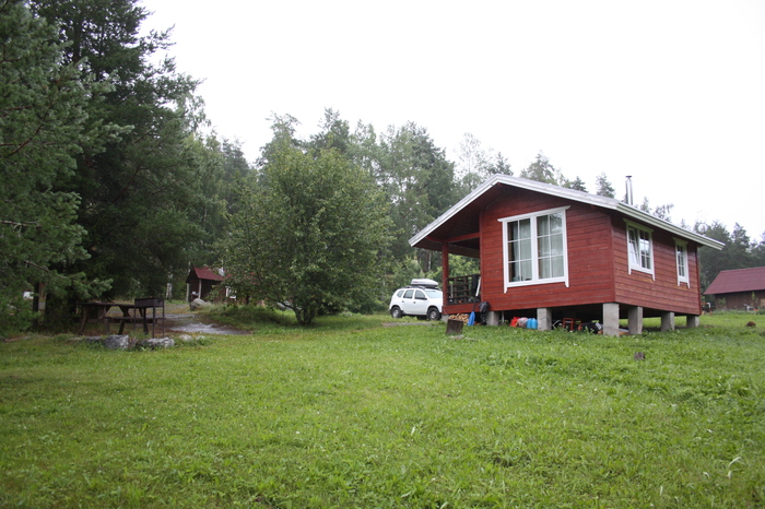Давно хотели поехать отдыхать с семьей в Карелию. Красивая природа, грибы, ягоды, какая-никакая рыбалка (хотя мы не рыбаки вовсе, нас увлекает процесс, а не результат). Раньше ходили с ребятами сплавляться по карельским рекам на байдарках, но дорога на поезде в плацкартном вагоне с байдарками – сама по себе стоила целой истории и занимала сутки. Для семейного отдыха выбрали вариант проживания в домике на берегу Ладожского озера. Главный критерий выбора места – транспортная доступность на машине за один световой день. От Москвы получалось 950 км, или чуть больше 10 часов по платной трассе М11 (от Санкт-Петербурга – рукой подать). Место называется Хутор на Ладоге, или Хутор Рантамяки (сайт: рантамяки.рф). Возможно, «Ranta mäki» переводится с финского, как «Пляжный холм». Координаты этого места: 61.437690° N, 30.236812° E. Радом есть еще несколько туристических баз, но они, либо чуть дороже, либо не такие уютные (домики стоят в ряд близко друг к другу), либо без удобств в домиках.