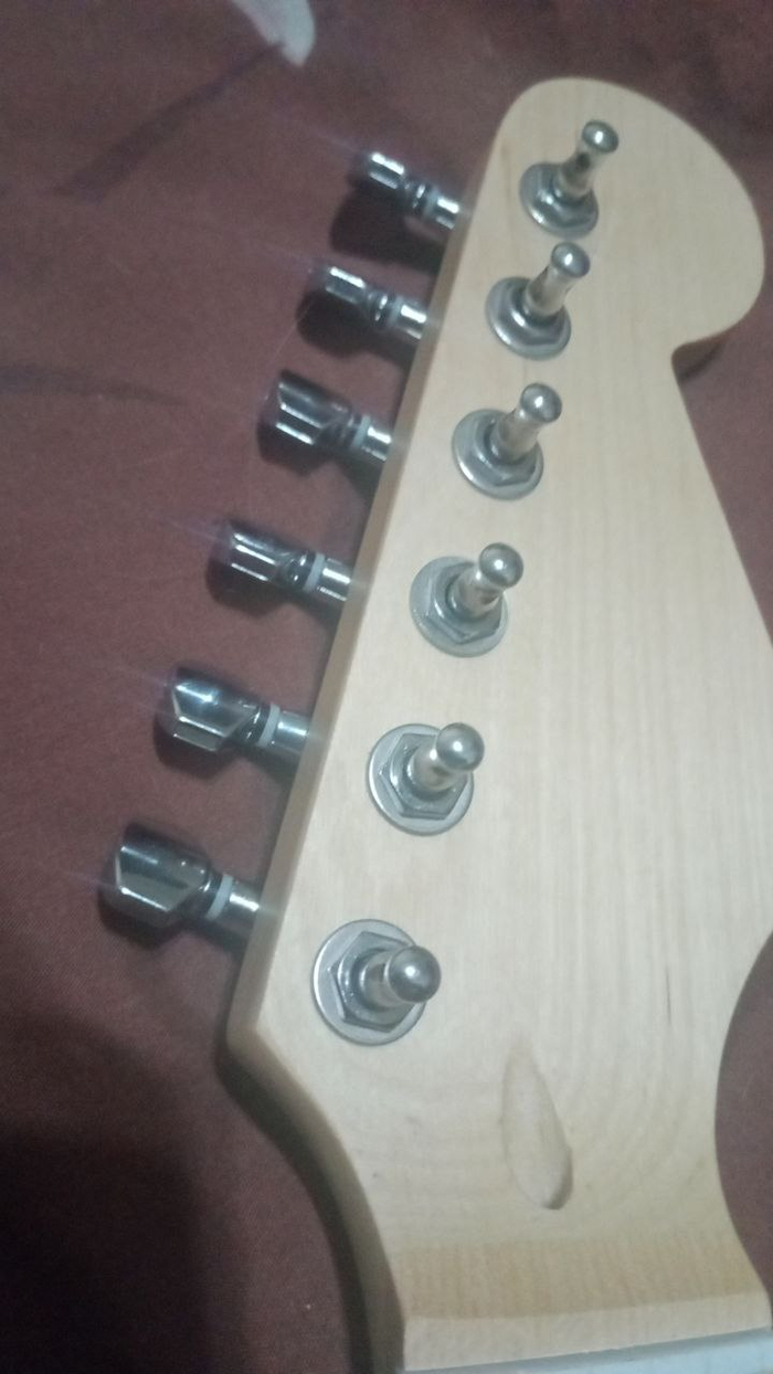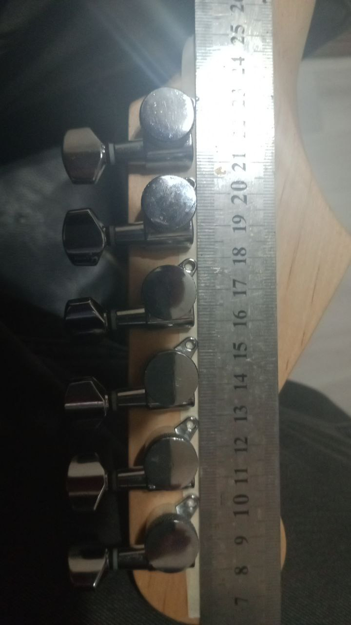 Для того, чтобы колки не торчали, как пальцы веером у блатного, их довольно легко выровнять по базовой (верхней) поверхности фендероподобных гитар. Выставив первый и последний колки строго перпендикулярно верхней грани головки грифа, остальные можно отбазировать относительно их стальной линейкой.
