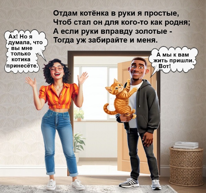 VeStr28 Юмор Вместе с котиком на ПМЖ Серия Озорные Рассмешизмы 1 час назад [моё] Контент нейросетей Юмор Ирония Диалог Картинка с текстом Арты нейросетей Кот 1 Ещё 0