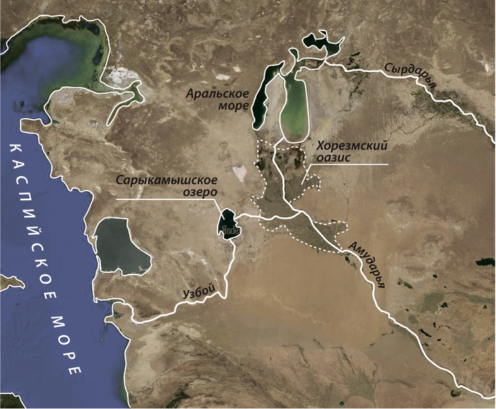 в данный залив от Амударьи – это уже раздел фантастики. Допускаю, что исследователями в XVIII веке ряд из солончаковых впадин вдоль южной границы плато Устюрт был воспринят как остатки русла.